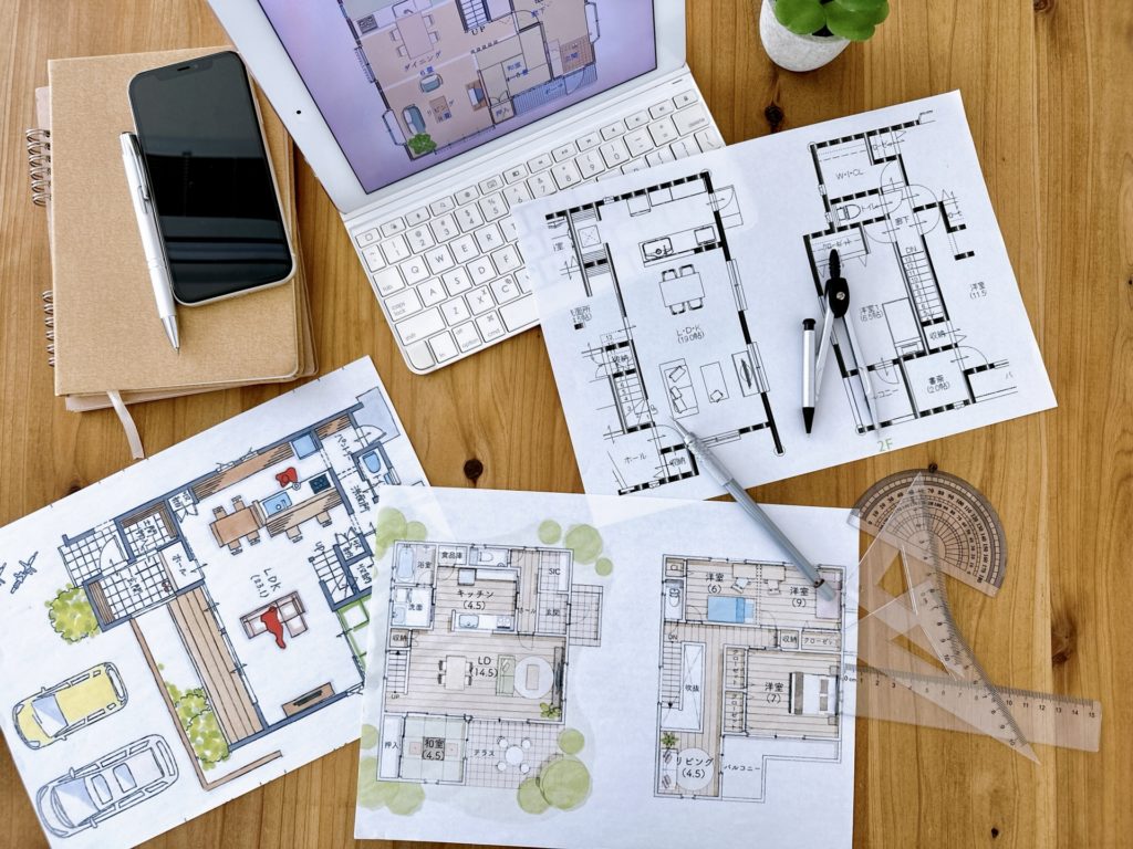家族の意見はさまざま、土地の形状や向きによって、間取りが変わります。